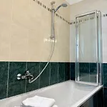 В ванной комнате также есть ванна, отдельный туалет и душ. Для удобства гостей предусмотрены сушилка и банные полотенца.